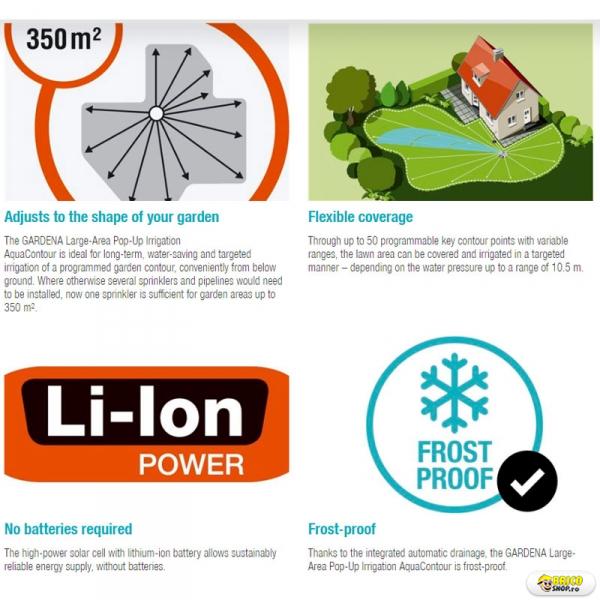 Raza de udare reglabila: 2,5-9 m (2 bar)/ 4-10,5 m (4 bar).