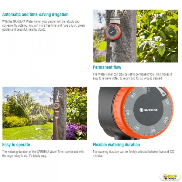 Programator udare, se deconecteaza automat. Timpul de udare poate fi setat intre 5 – 120 minute.