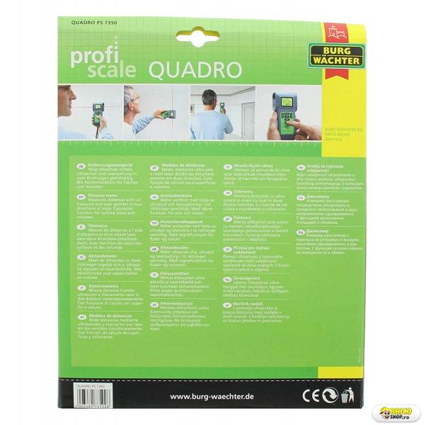 Aparatul de masurare bidirectionala a distantelor QUADRO PS 7350 apartine clasei II de dispozitive cu laser, corespunzand standardului de siguranta EN 60825-1:1994 + A1:2002 + A2:2001.
