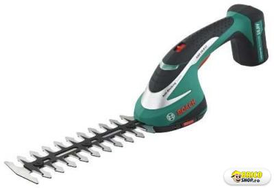 Acumulatorul litiu-ion de 10,8 V furnizeaza o putere mare foarfecelui pentru arbusti si iarba. Chiar arbustii si tufele de dimensiuni mai mari pot fi taiate rapid si curat in forma dorita cu ajutorul cutitelor taiate cu laser si slefuite de precizie. O particularitate a noilor foarfece pentru arbusti Bosch o reprezinta sistemul „Anti-Blocking“. Acesta asgura taieri fara intrerupere, chiar in cazul crengilor groase. Sistemul electronic al foarfecelui sesizeaza instantaneu momentul in care lamele nu pot taia crengile. In acest caz directia de rotire a cutitului este reglata in mod automat astfel incât foarfecele sa nu se blocheze. Prin aceste avantaje, ASB 10,8 V LI este cel mai puternic foarfece pentru arbusti de pe piata.
